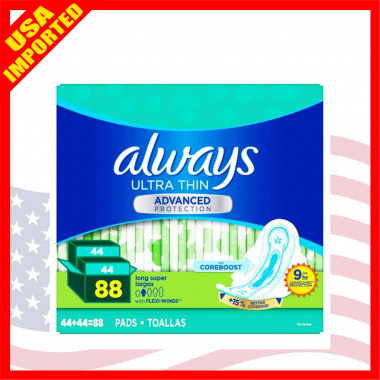 Always Ultra Thin Advanced Protection , 88 count provides you 9 hours leakguard protection . Its long super largas and flexi wings .