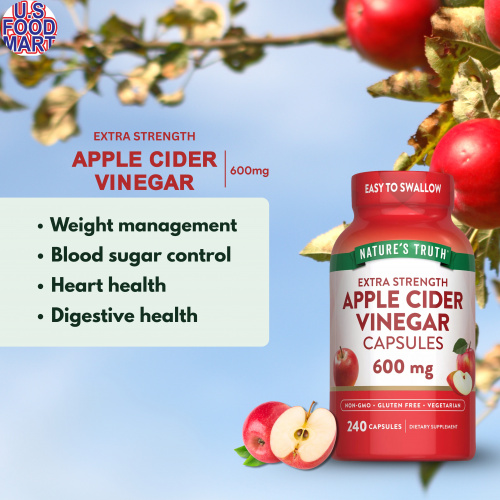Apple Cider Vinegar 600mg capsules deliver the benefits of traditional liquid vinegar without the strong taste or smell. Each serving helps support healthy digestion, metabolism, and natural detox. With 240 capsules per bottle, it provides long-lasting support for daily wellness routines.