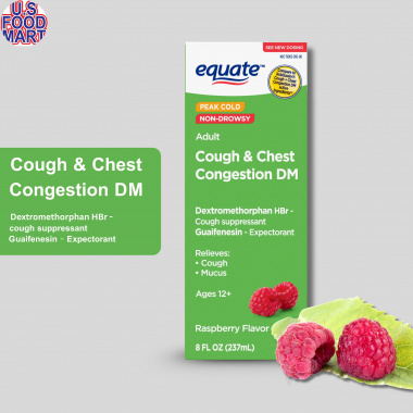 Fast-acting relief for coughs and chest congestion, designed to help you breathe easier.Equate Cough & Chest Congestion DM provides effective relief from persistent coughs and chest congestion. Formulated with Dextromethorphan HBr (cough suppressant) and Guaifenesin (expectorant), it helps loosen mucus and control coughing for better comfort.