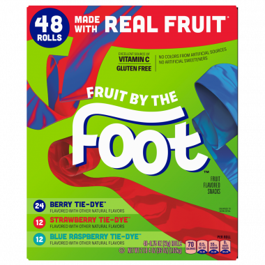 Long, fun, and fruity — enjoy 48 rolls of delicious fruit-flavored snacks perfect for kids and families!Unroll the fun with Fruit by the Foot 48 Rolls, the ultimate fruity snack that’s as playful as it is tasty! Each roll bursts with vibrant fruit flavor and offers a chewy, sweet experience that kids love. Perfect for lunchboxes, parties, or anytime snacking, these individually wrapped rolls make sharing easy and fun.