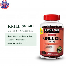 Kirkland Signature Krill Oil 500mg Omega-3 + Astaxanthin 180 Softgels provide a powerful and natural way to promote cardiovascular, cognitive, and joint health. Extracted from Antarctic krill, this formula contains essential Omega-3 fatty acids (EPA & DHA) bound to phospholipids for enhanced absorption and effectiveness. It also includes the potent antioxidant Astaxanthin, which supports cellular protection and overall wellness.
