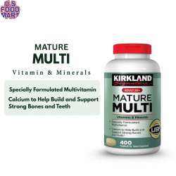 Kirkland Signature Mature Multi Adult 50+ Vitamins & Minerals 400 Tablets provide a comprehensive blend of essential vitamins and minerals tailored for adults aged 50 and above. This formula helps support heart and bone health, cognitive function, immune system strength, and overall vitality. With 400 convenient tablets, it ensures long-term daily nutritional support for healthy aging.