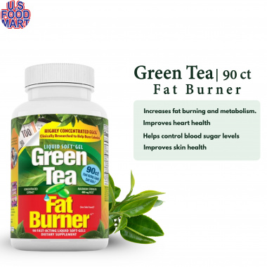 Boost your metabolism and energy naturally with Green Tea Fat Burner — a premium antioxidant formula in easy-to-swallow liquid softgels for faster absorption and effective fat burning.Green Tea Fat Burner 90 Liquid Softgels are scientifically formulated to support calorie burning and enhance your body's natural fat oxidation process. Each liquid softgel delivers a powerful blend of green tea extract standardized for EGCG — a potent antioxidant known to help boost metabolism and promote energy. The liquid softgel format ensures faster absorption and superior effectiveness compared to traditional capsules.